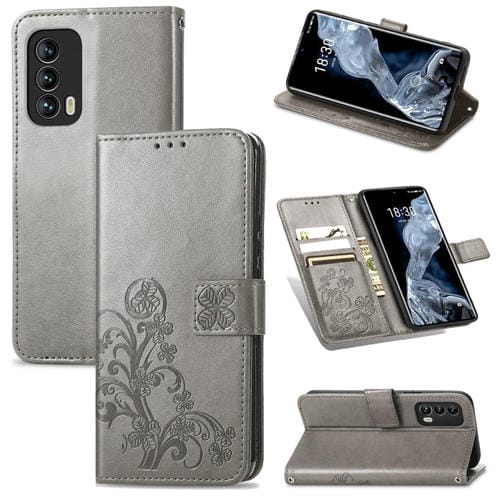 Funda de Cuero para Meizu 18 con Cierre de Cuatro Hojas, Hebilla, Ranura para Tarjeta y Soporte (Gris)