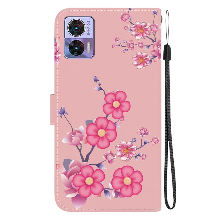 Funda para Motorola Edge 30 Neo y 30 Lite de Cuero con Dibujo y Textura de Cristal (Flores de Cerezo)