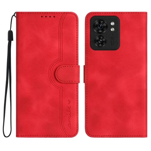Funda de Cuero para Motorola Edge 40 con Sensación de Piel y Patrón de Corazón (Rojo)