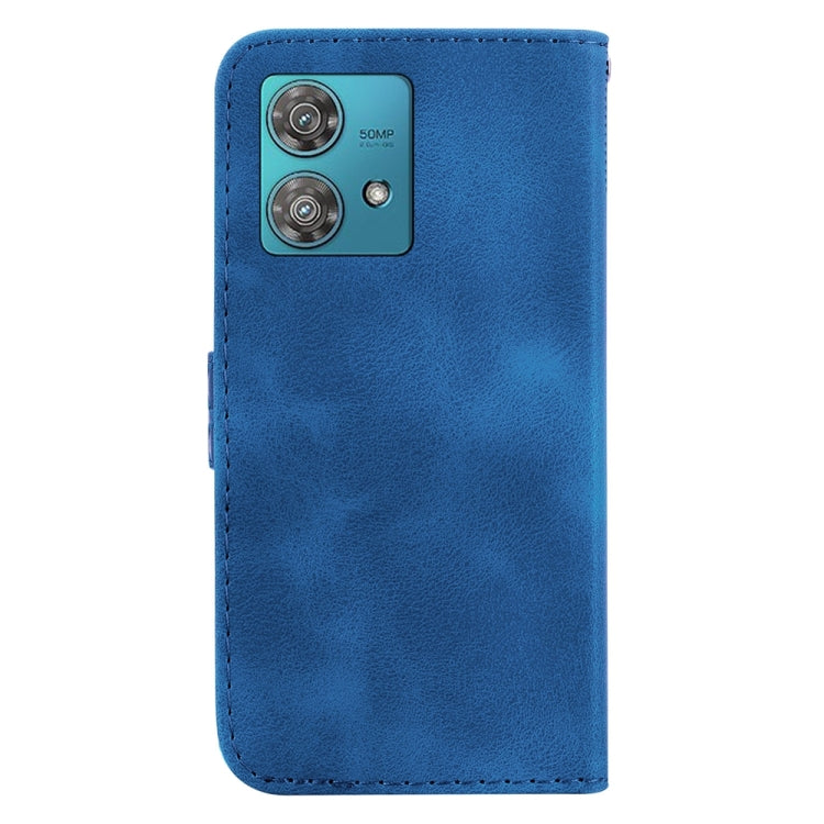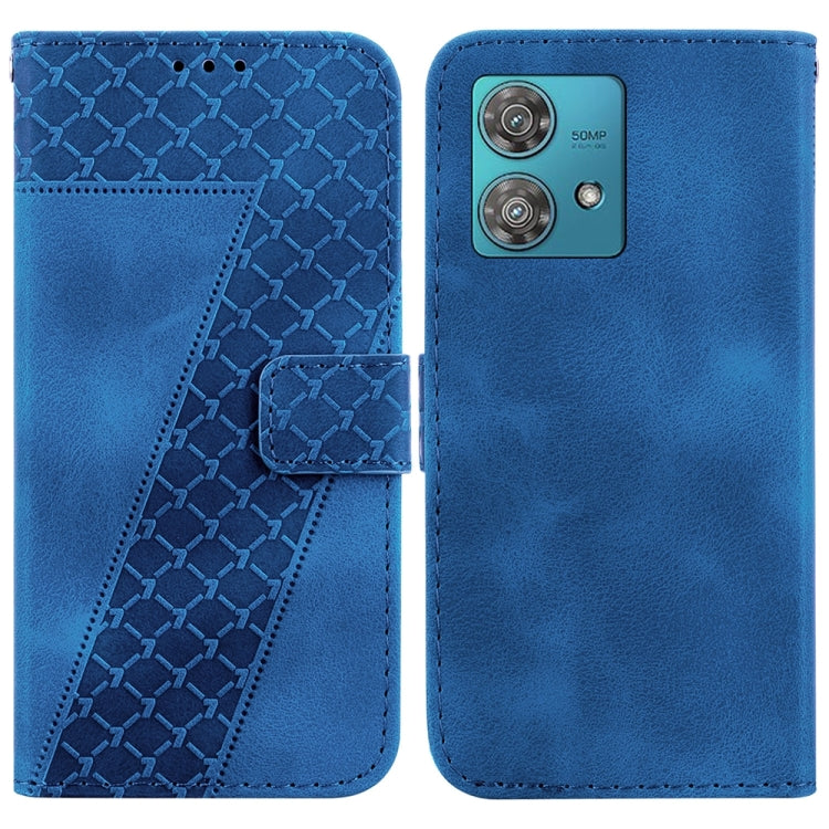 Funda de Cuero para Motorola Edge 40 Neo con Relieve en Forma de 7 (Azul)