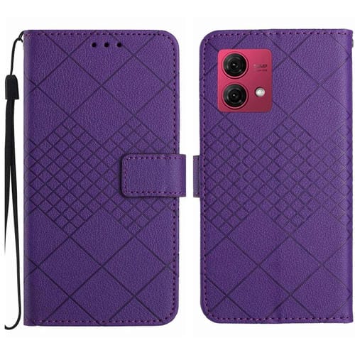Funda de Cuero para Motorola Edge 40 Neo con Textura de Rejilla Rómbica (Púrpura)