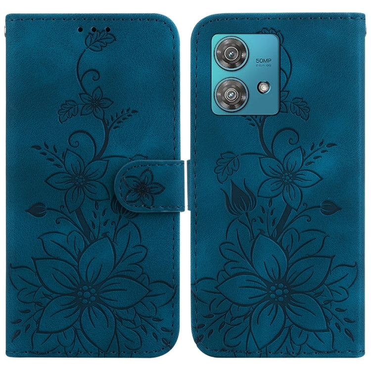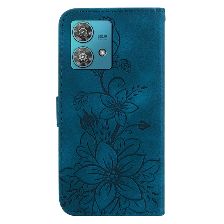 Funda de Cuero en Relieve para Motorola Edge 40 Neo Lily para Teléfono (Azul Oscuro)
