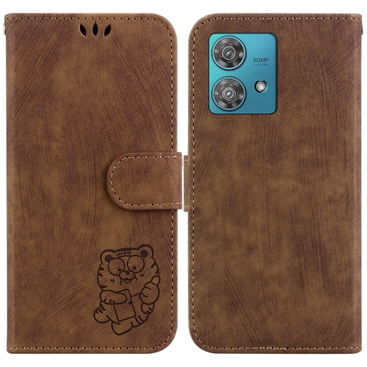 Funda de Cuero Motorola Edge 40 Neo Little Tiger en Relieve (Marrón)