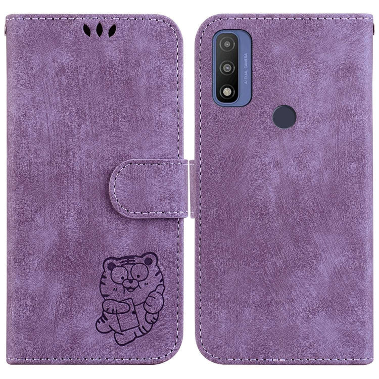 Funda de Cuero en Relieve para Motorola G Pure Little Tiger para Teléfono (Púrpura)