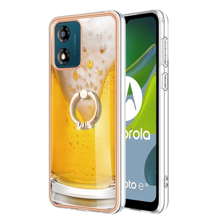 Funda para Motorola Moto E13 Galvanoplastia IMD Doble Cara con Soporte para Anillo (Cerveza de Barril)