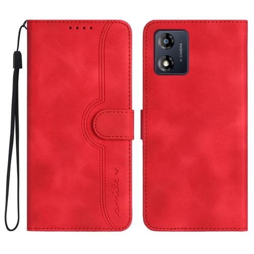 Funda de Cuero para Motorola Moto E13 con Diseño Heart Pattern Skin Feel (Rojo)