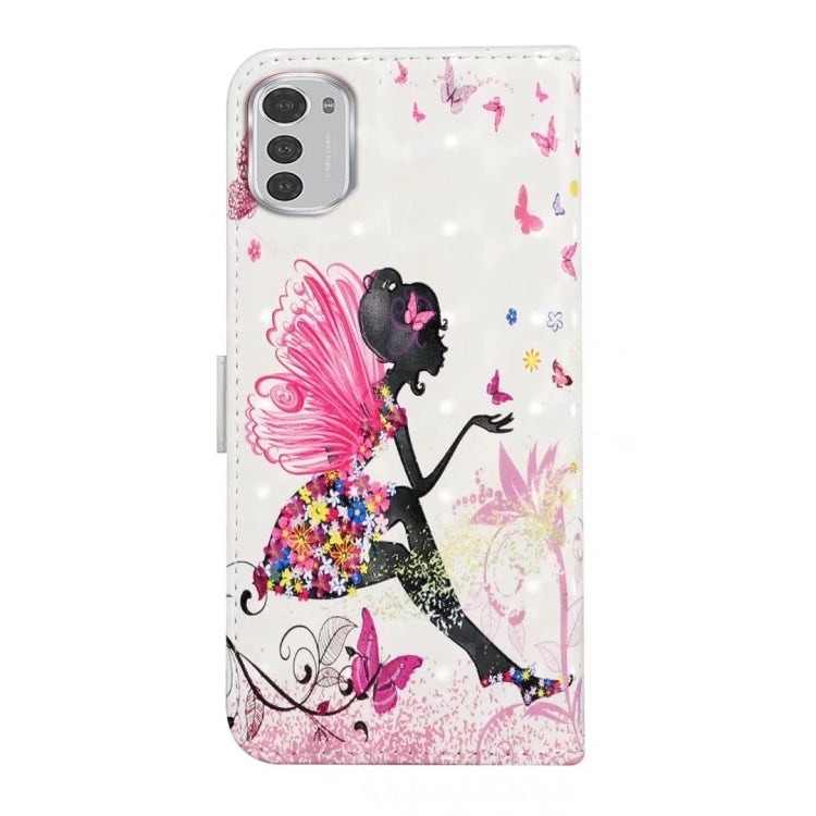 Funda de Cuero para Motorola Moto E32 con Dibujo 3D en Relieve al Óleo (Hada de Flores)