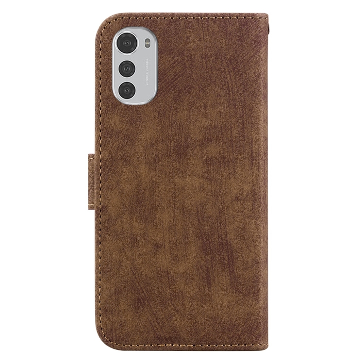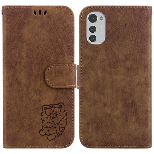 - 1x Funda de Cuero para Motorola Moto E32 Little Tiger en Relieve (Marrón)