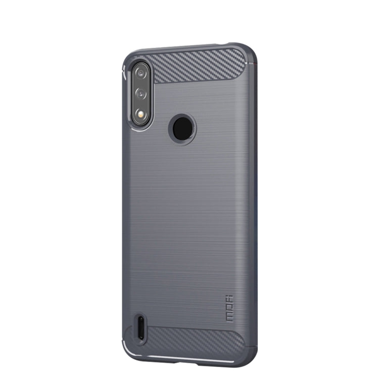 Para Motorola Moto E7 Power Mofi Gentleness Series Textura cepillada Fibra de carbono FIBRA SOFT TPU Funda (gris)