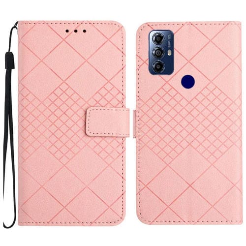 Funda de Cuero para Motorola Moto G Play 2023 y G Pure 2021 con Textura de Rejilla Rómbica (Rosa)
