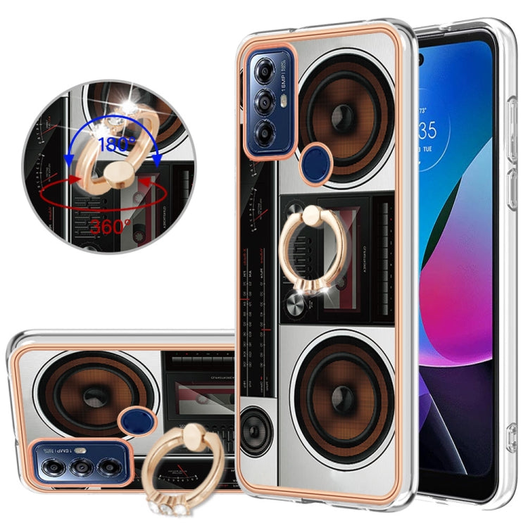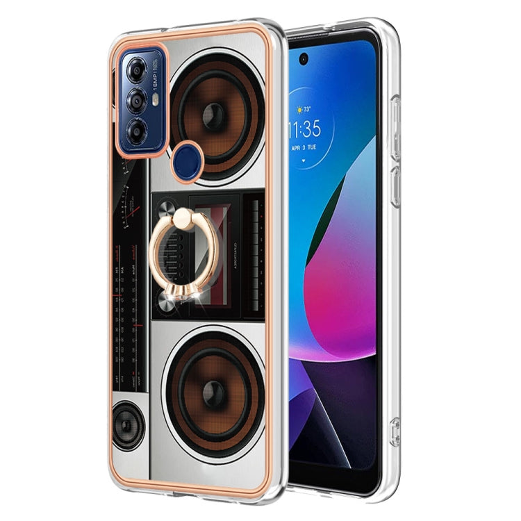 Funda para Motorola Moto G Play 2023 Galvanoplastia IMD Doble Cara con Soporte para Anillo (Radio Retro)