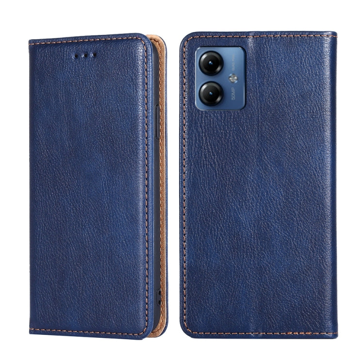 Estuche para Motorola Moto G14 4G de Cuero Magnético con Aceite Brillante (Azul)