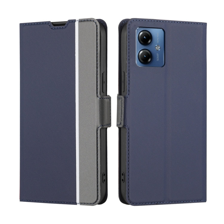 Funda de Cuero para Motorola Moto G14 4G con Botón Lateral y Textura de Sarga (Azul)