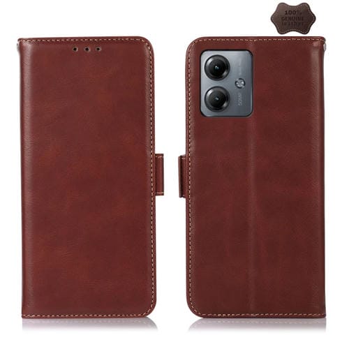 Funda Magnética para Motorola Moto G14 4G con Rfid y Textura Caballo Loco de Cuero Genuino (Marrón)