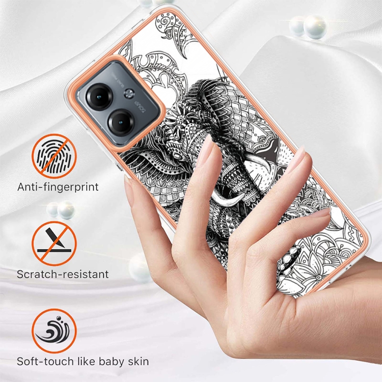 Estuche para Motorola Moto G14 Imd Doble Cara Mármol Galvanizado (Totem Elephant)