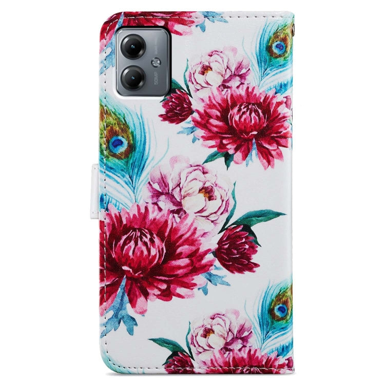 Funda de Cuero para Motorola Moto G14 con Tapa Horizontal y Patrón Flor de Pavo Real