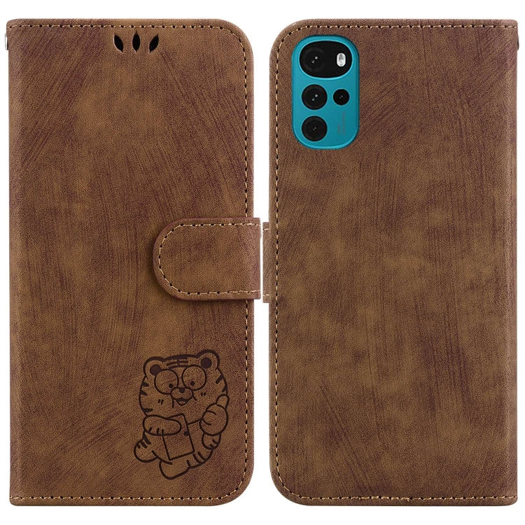 Funda de Cuero para Motorola Moto G22 Little Tiger en Relieve (Marrón)