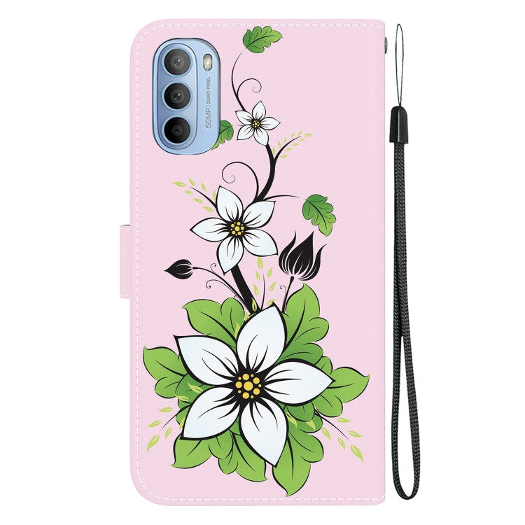 Funda de Cuero para Motorola Moto G31 y G41 con Dibujo Coloreado y Textura de Cristal (Lirio)