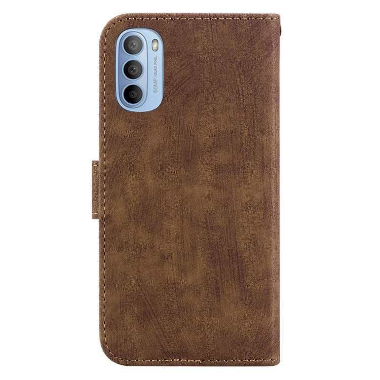 Funda de Cuero Motorola Moto G31 G41 con Relieve Little Tiger (Marrón)