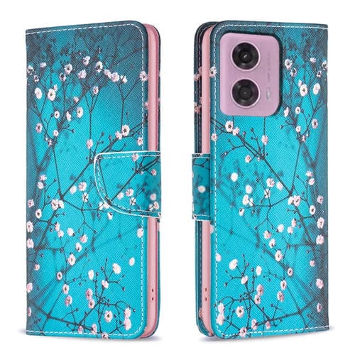 Funda de Cuero para Motorola Moto G34 5G con Patrón de Dibujo Coloreado (Flor de Ciruelo)