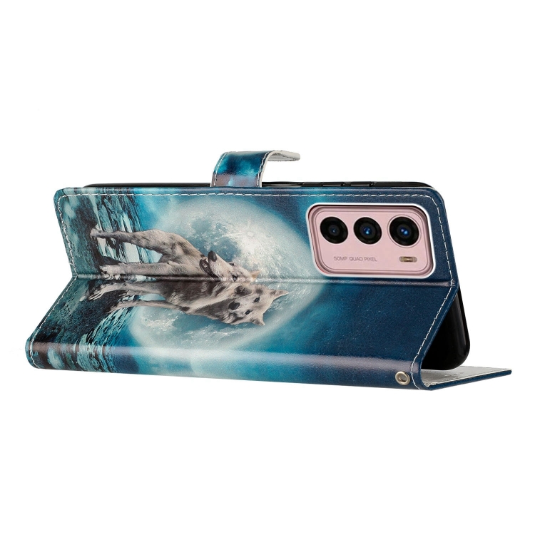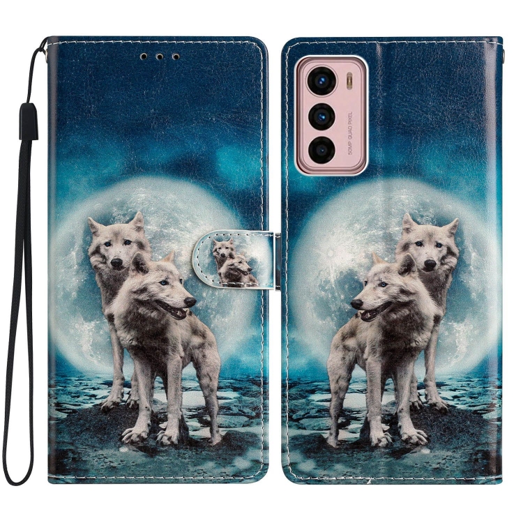 - 1x Estuche de Cuero para Motorola Moto G42 con Dibujo Coloreado Lobos Gemelos