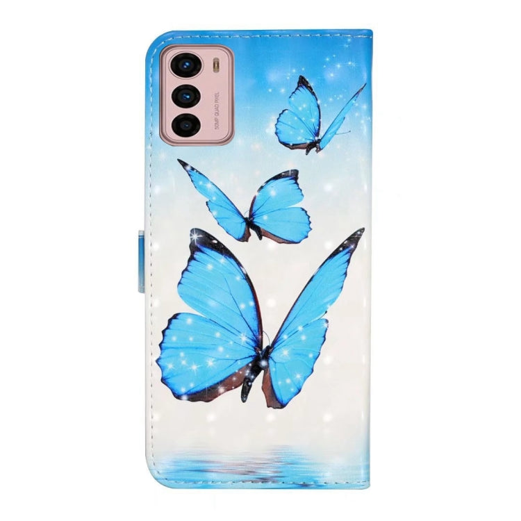 Funda de Cuero para Motorola Moto G42 con Dibujo 3D en Relieve al Óleo (3 Mariposas)