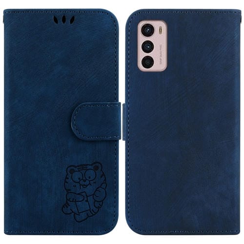 - 1x Funda de Cuero para Motorola Moto G42 con Relieve Little Tiger (Azul Oscuro)