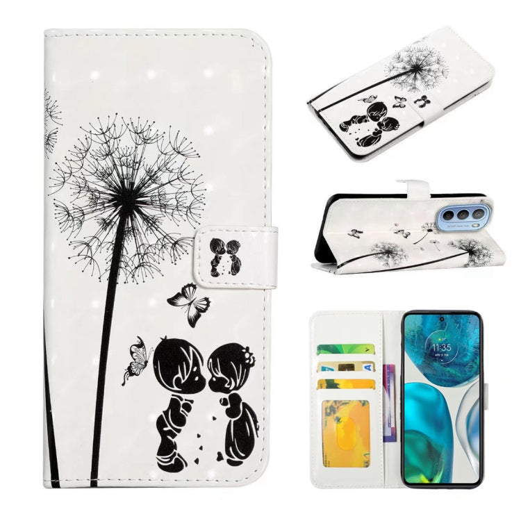 Funda de Cuero para Motorola Moto G52 con Dibujo 3D en Relieve al Óleo (Pareja de Diente de León)