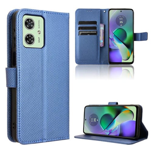 Funda de Cuero para Motorola Moto G54 5G con Textura de Diamante (Azul)