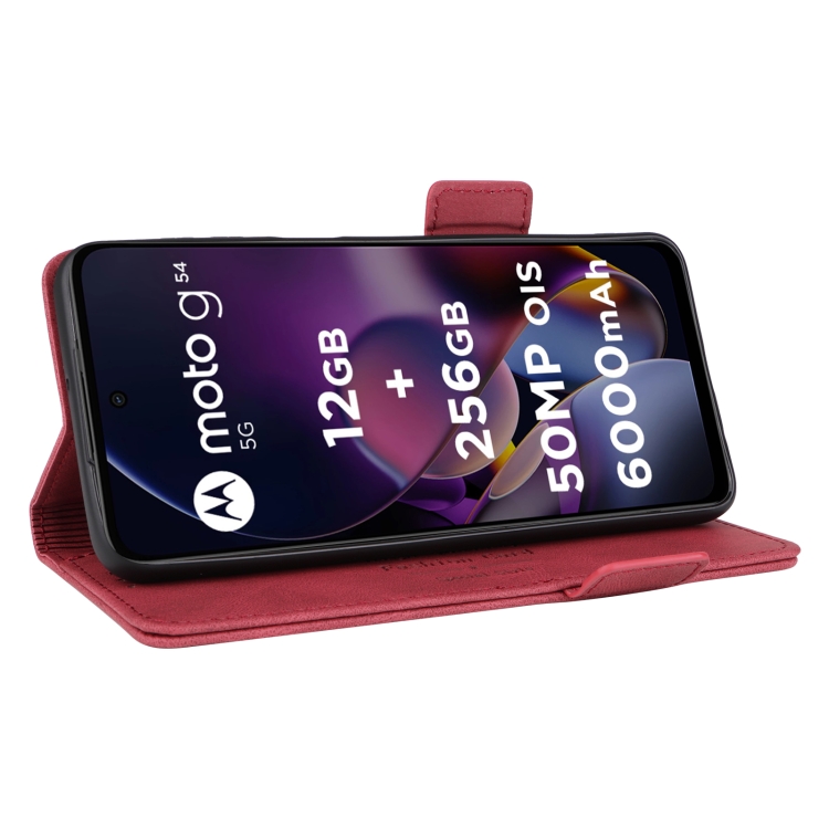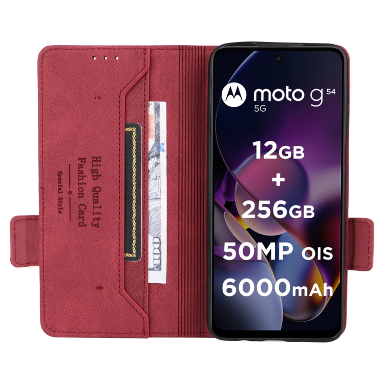 Funda de Cuero para Motorola Moto G54 5G con Cierre Magnético (Rojo)