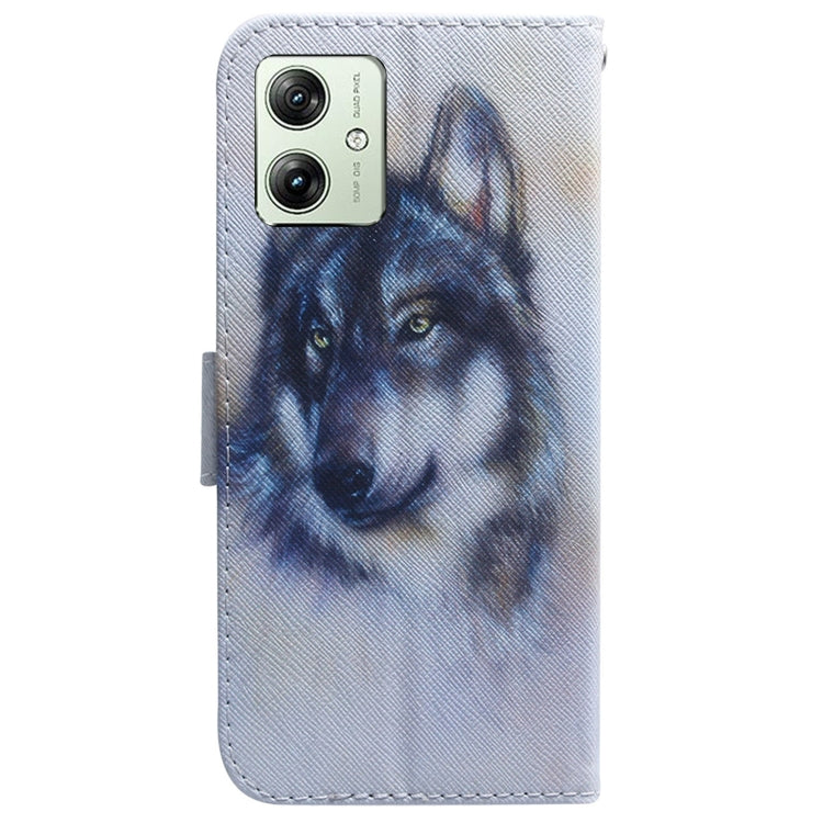 Funda de Cuero para Motorola Moto G54 con Tapa y Dibujo Coloreado (Lobo Blanco)