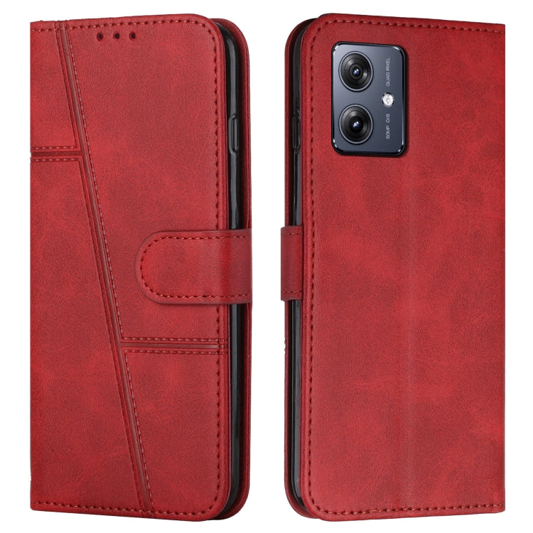 Funda para Motorola Moto G54 de Cuero con Hebilla y Textura de Becerro (Rojo)