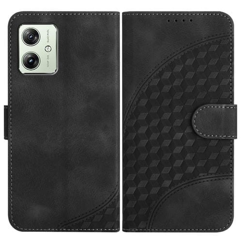 Funda de Cuero para Motorola Moto G54 Global Yx0060 con Relieve y Cabeza de Elefante con Cordón (Negro)