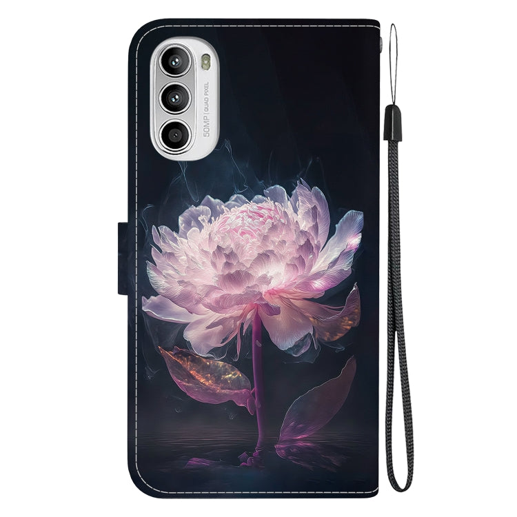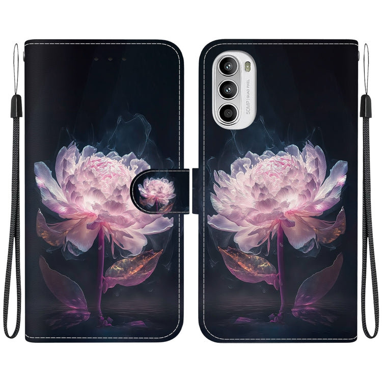 Funda de Cuero para Motorola Moto G62 5G con Dibujo Coloreado y Textura de Cristal (Peonía Púrpura)