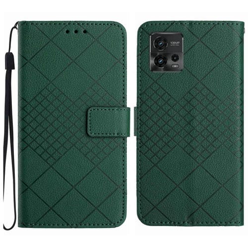 • 1x Funda de Cuero para Motorola Moto G72 4G con Textura de Rejilla Rómbica (Verde)
