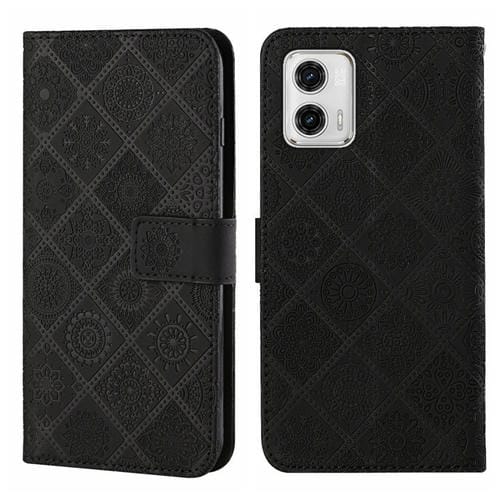 Funda de Cuero para Motorola Moto G73 con Patrón en Relieve Estilo Étnico (Negro)