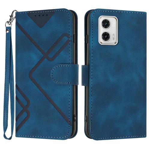 - 1x Funda de Cuero para Motorola Moto G73 con Textura Line Pattern Skin Feel (Azul Real)