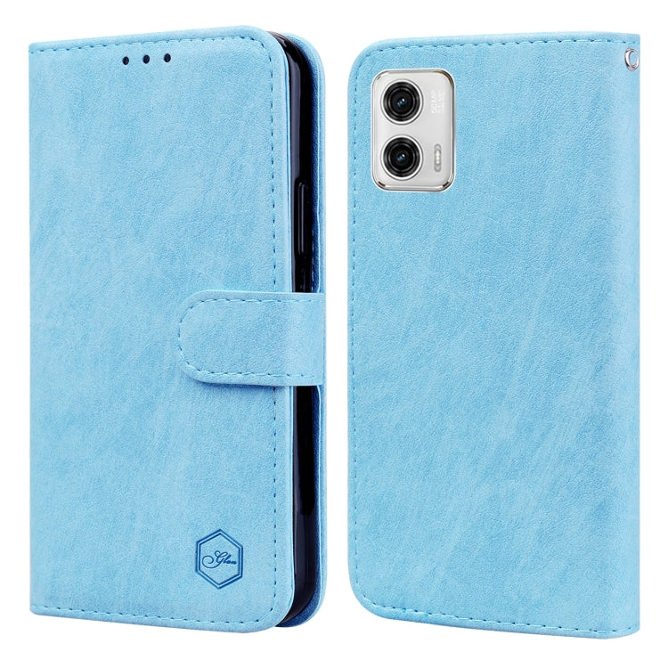 Funda para Motorola Moto G73 con Textura de Cuero PU y TPU (Azul Claro)