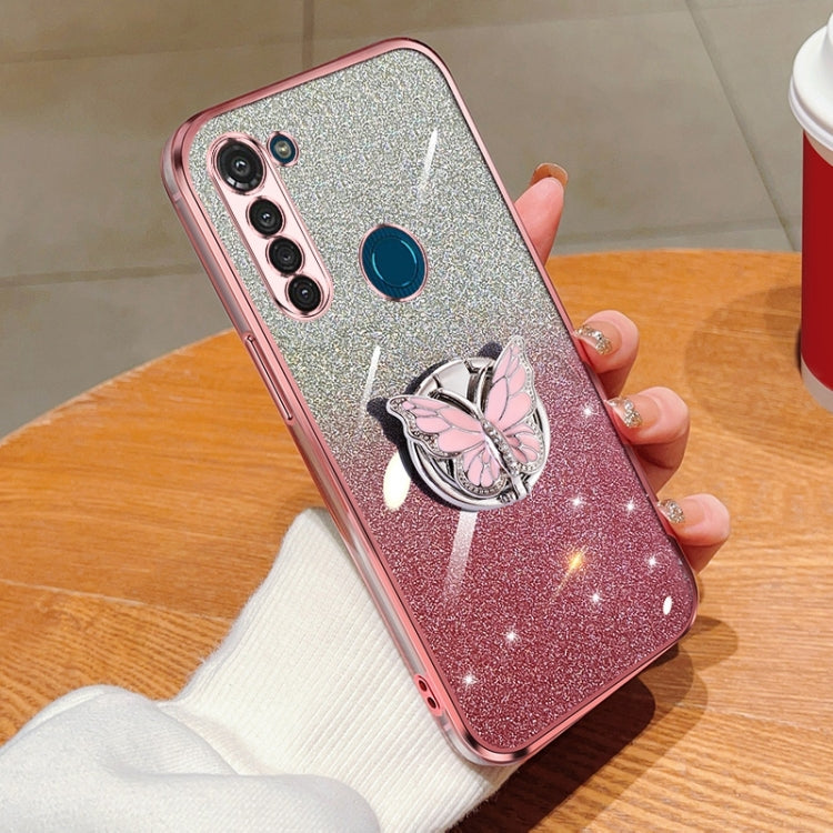 Funda TPU para Motorola Moto G8 con Soporte Mariposa y Brillo Degradado (Rosa)