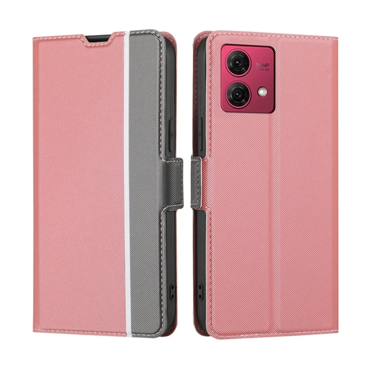 Funda de Cuero para Motorola Moto G84 5G con Botón Lateral y Textura de Sarga (Rosa)
