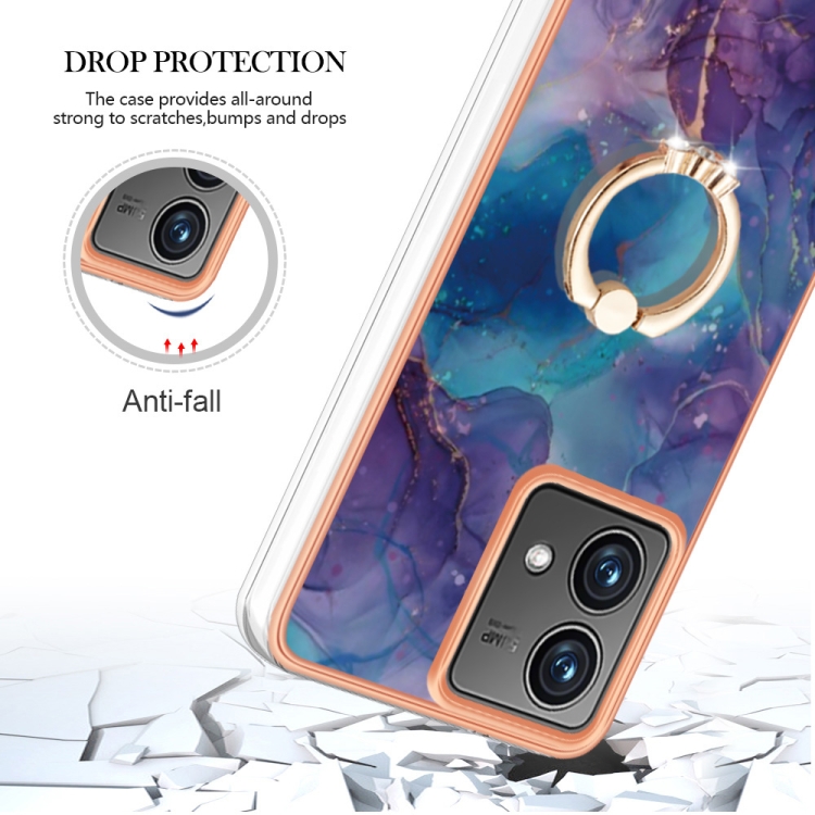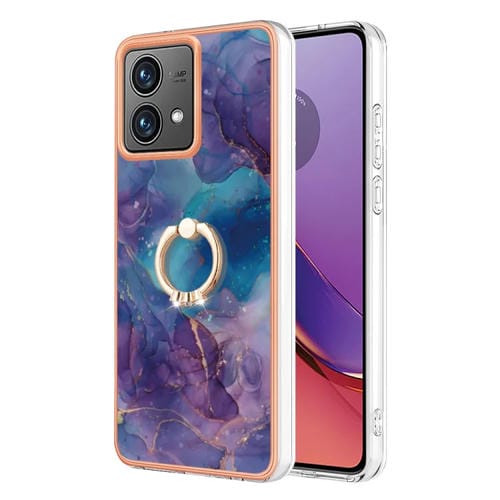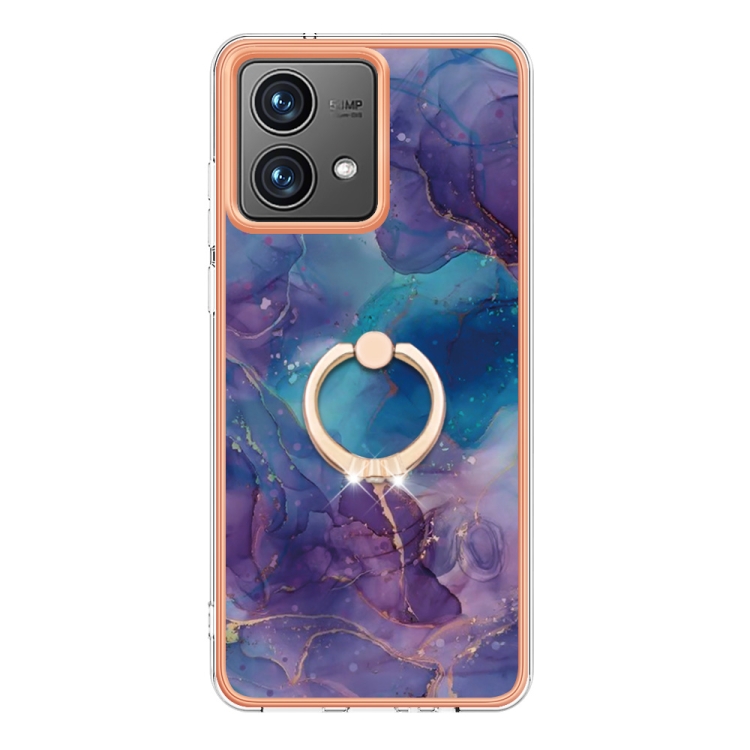 Estuche para Motorola Moto G84 IMD Doble Cara Mármol Galvanizado con Anillo (Púrpura)