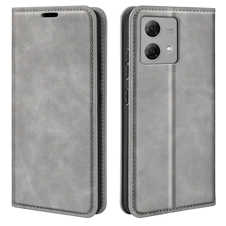 Funda de Cuero para Motorola Moto G84 con Succión Magnética Piel Retro (Gris)