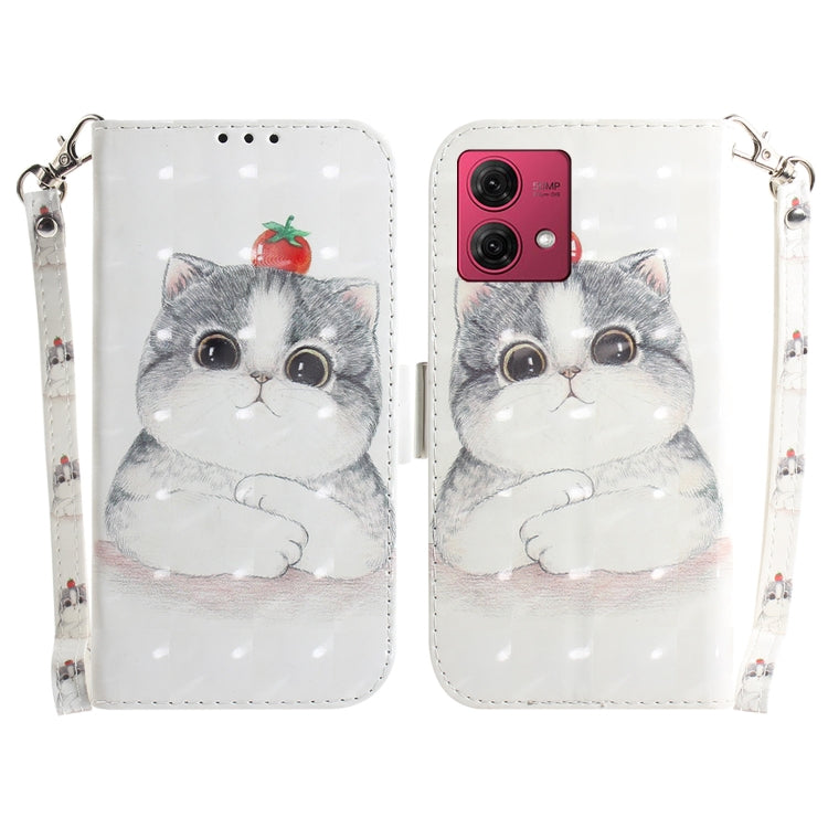 Funda de Cuero para Motorola Moto G84 con Tapa Horizontal y Diseño 3D (Lindo Gato)