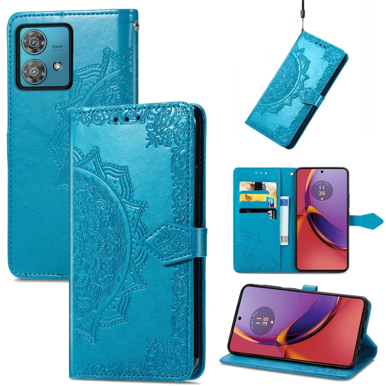 Funda para Motorola Moto G84 de Cuero con Relieve de Flores Mandala (Azul)