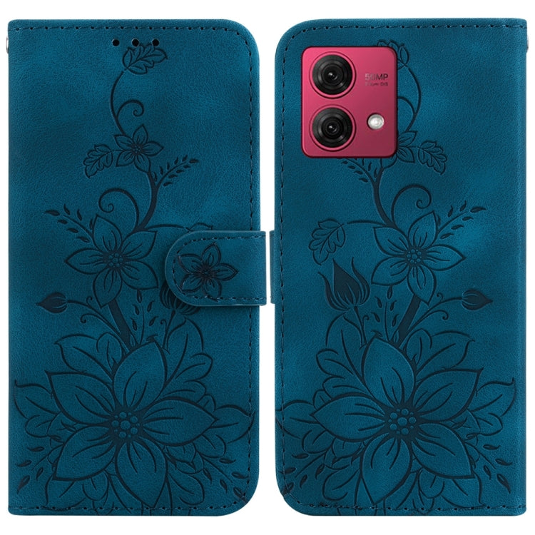Funda para Motorola Moto G84 Lily de Cuero En Relieve (Azul Oscuro)