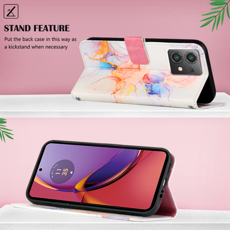 Funda de Cuero con Tapa para Motorola Moto G84 Pt003 con Patrón de Mármol (Ls004)