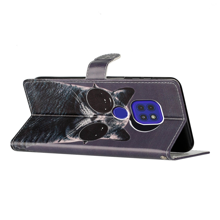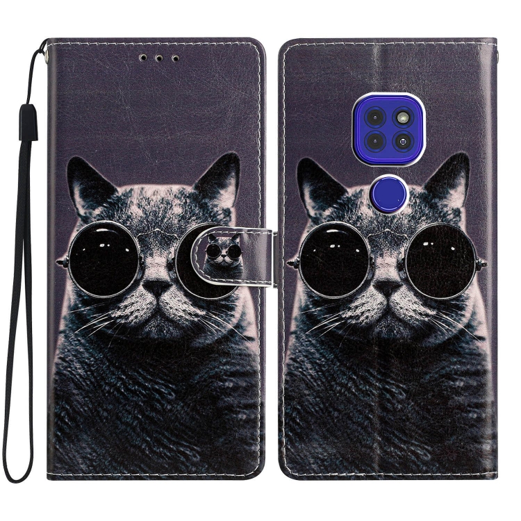 - 1x Estuche de Cuero para Motorola Moto G9 y G9 Play con Dibujo Coloreado (Gafas de Sol Cat)