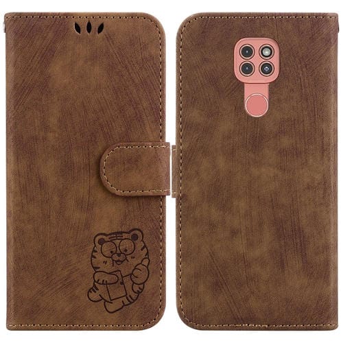 - 1x Funda para Motorola Moto G9 Play y E7 Plus de Cuero con relieve Little Tiger (Marrón)