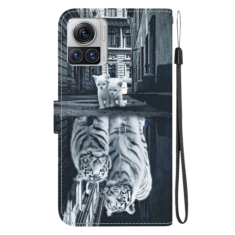 Funda de Cuero para Motorola Moto X30 Pro 5G con Dibujo Coloreado y Textura de Cristal (Reflejo de Tigre Gato)