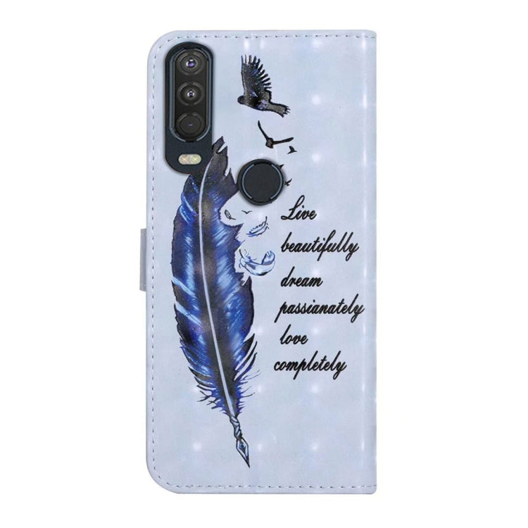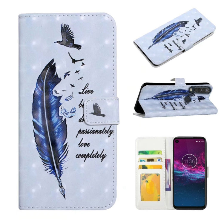 Funda de Cuero para Motorola One Action con Dibujo 3D en Relieve al Óleo (Pluma Azul)